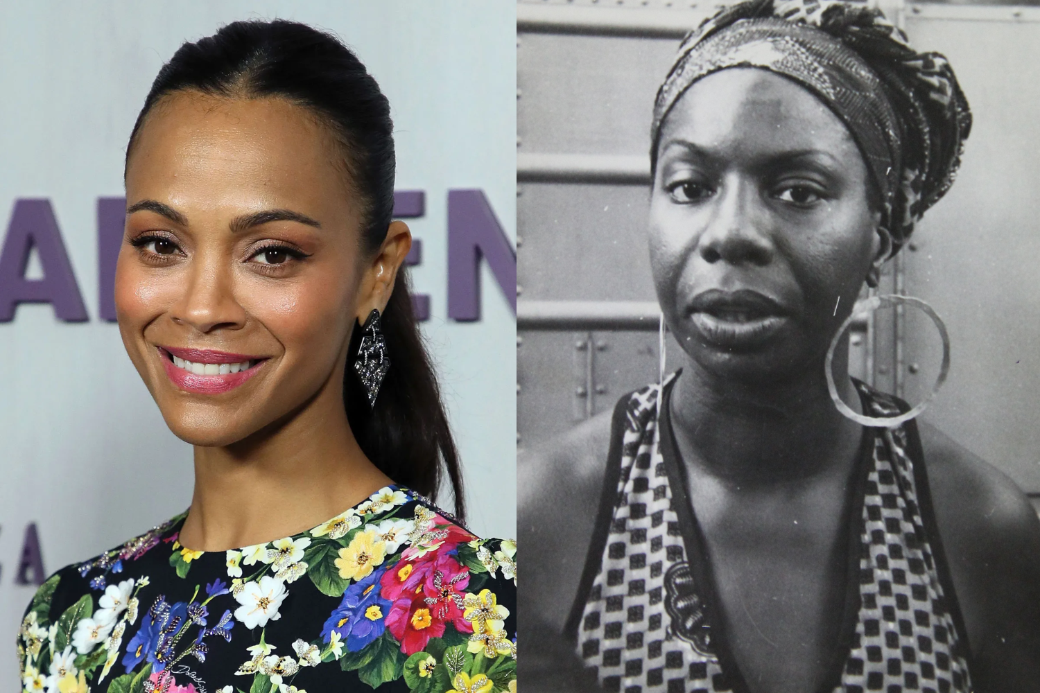 Zoe Saldana (left) and Nina Simone (right)