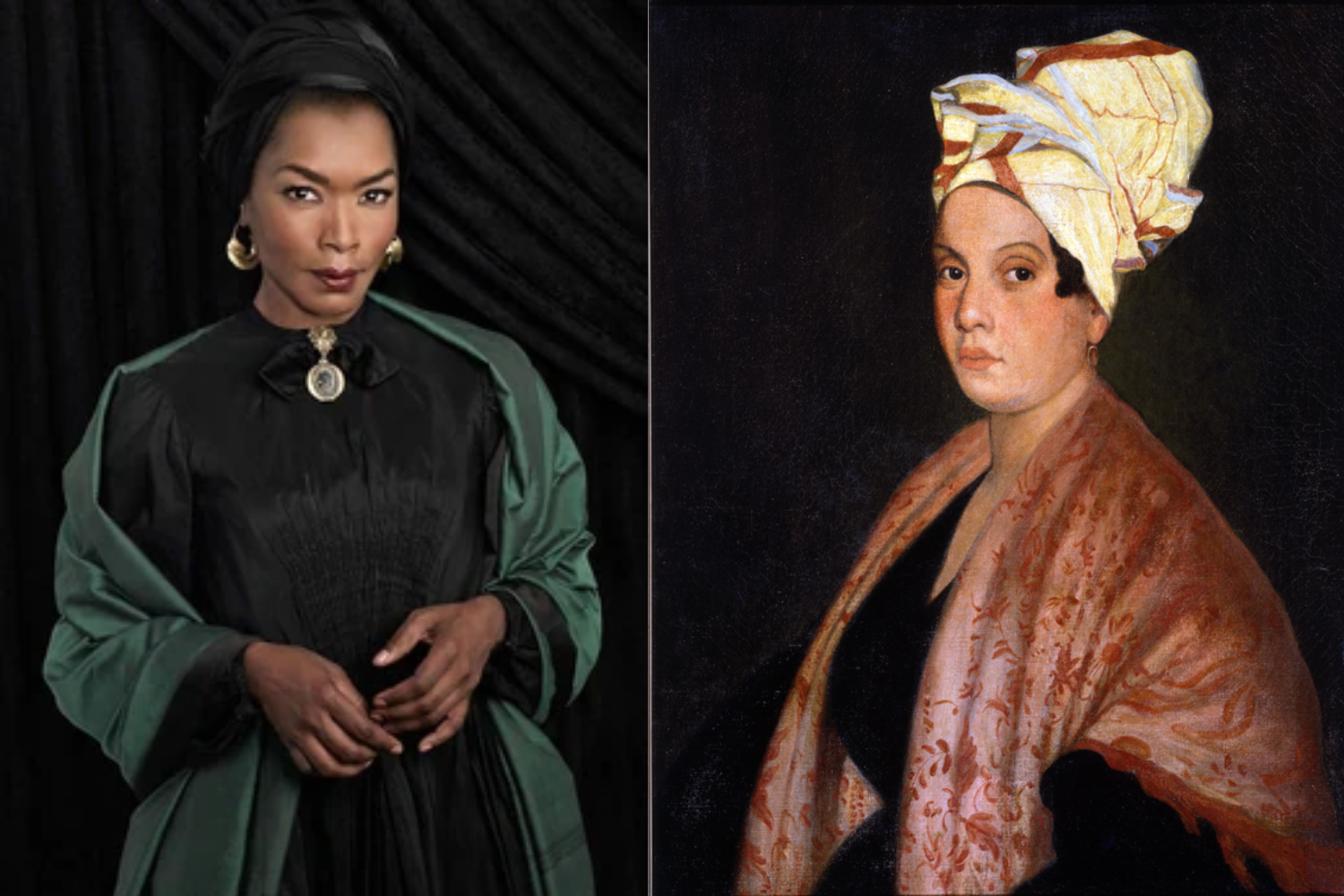 Angela Bassett as Marie Laveau (left) and painting of the real Marie Laveau (right)